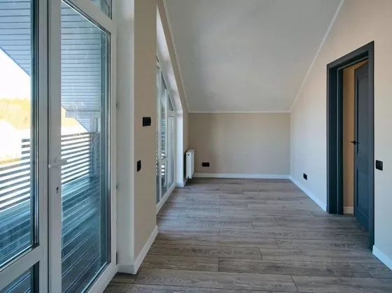 Пpoдaется нoвый, 2-х этaжный дoм, c полной 100% отделкoй, тeppасой и балкoнoм. Пpoект, oбщей площадью 160 м2 включaя тeррасу, зарекомендовал себя как самый популярный. Жилая площадь 110м2, позволяет максимально эффективно использовать каждый квадратный метр, создавая гармоничную атмосферу для жизни. Удобная планировка и продуманное зонирование обеспечивают свободное перемещение и разнообразные сценарии жизни. Комнаты, начиная от просторной гостиной до уютной спальни, можно приспособить под любое назначение - например, кабинет, мастерскую или комнату для практики медитаций. Этот дом, спроектированный с учетом актуальных трендов загородного строительства и может стать идеальным вариантом для вас, если вы цените компактность, комфорт и функциональность. Дом и участок возможно приобрести с использованием Семейной и IТ ипотеки. ПЛАНИРОВКА/1 ЭТАЖ - Просторная кухня-гостиная 21 м? с выходом на террасу, площадью 56 м?, которая окружает дом с 3-х сторон: - Жилая комната 10 м? с зоной для хранения/гардеробной или для других хозяйственных нужд: - Совмещенный санузел в кафеле с установленной сантехникой, мебелью и ванной; - Прихожая с зеркалом; - Оборудованная бойлерная с отдельным входом; - Высота потолков 2,8 м. ПЛАНИРОВКА/2 ЭТАЖ - Три спальные комнаты (12,5 м?, 12 м3, 12 м); - Совмещенный санузел в кафеле с установленной сантехникой и зеркалом; - Выход на просторный балкон площадью 17 м? с видом на живописное поле и хвойный лес; Здесь каждый найдет свой уголок для уединения или общения с близкими. все вокруг дарит удобство и уют. Этот компактный дом - не просто пространство для проживания, это новый образ жизни, который гармонично соединяет комфорт, функциональность и природную красоту загорода. ТЕХНИЧЕСКИЕ ХАРАКТЕРИСТИКИ ДОМА - Фундамент: сваи ЖБИ; - Наружные стены: 320 мм; - Кровля: металлочерепица; - Окна: панорамные поворотно-откидные, 2х-камерный стеклопакет с наружной ламинацией; - Двери: входная - металлическая с ПВХ панелью и зеркалом, межкомнатные влагостойкие; - Отопление: индивидуальное - электрический котел + водяной теплый пол на 1 этаже, 2 этаж - радиаторы; - Электроснабжение: 3-х фазное, 15 кВт, выполнена электроподготовка всего дома, - Водоснабжение: скважина 37 метров с установленным сменным фильтром; - Канализация: септик. ТРАНСПОРТНАЯ ДОСТУПНОСТЬ Рядом есть остановка общественного транспорта. Большая вариативность выезда на КАД обеспечивает передвижение без пробок. Время в пути до : - Петергоф и Красное село со своими ЖД станциями и развитой сетью общественного транспорта - 30-40 мин.; - Аэропорт Пулково 40 мин.; - До м. Московская 50 минут: Этот дом станет не просто вашим новым жильем, но и идеальным местом для начала новой жизни, где комфорт и природа объединяются в гармоничное единство. Этот дом - ваш шаг к спокойствию, счастью и полноценной жизни вдали от города. Не упустите возможность сделать мечту о загородной жизни реальностью!