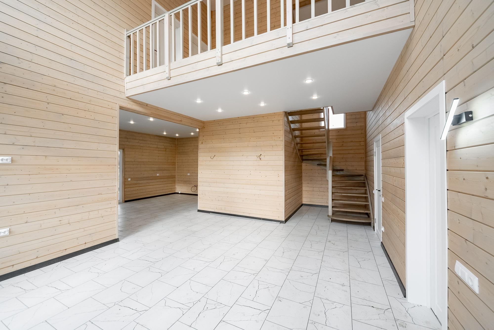 - внутренняя лестница : ель высшего сорта с пропиткой (в случае наличия второго этажа)