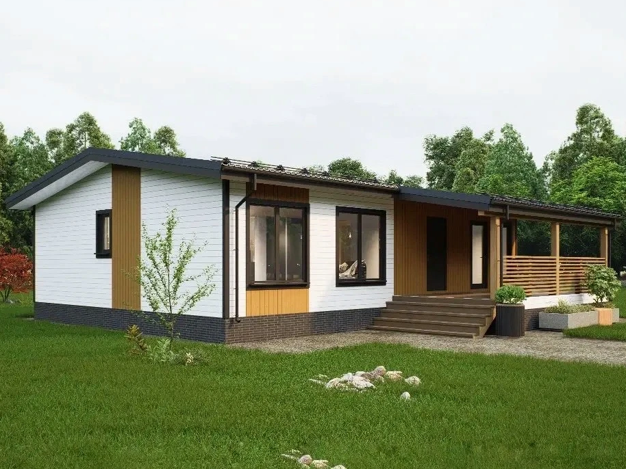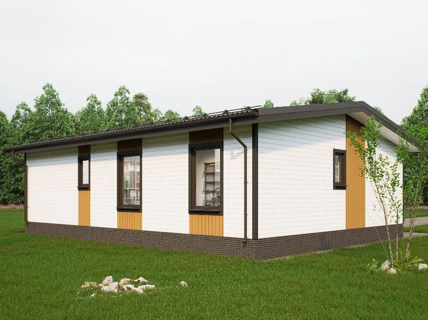 - наружная отделка : сайдинг (имитация бруса, фальц, фиброцемент является дополнительной опцией)