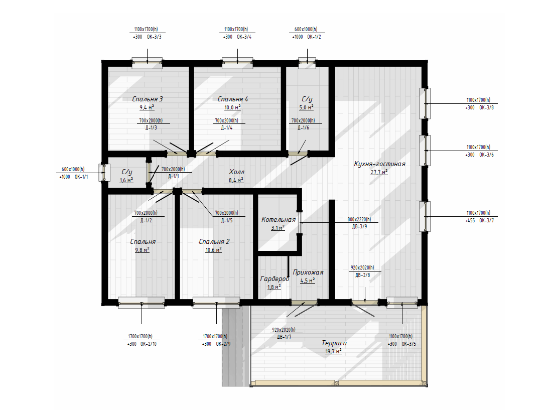 ✅· Четыре уютные спальни 10.6м², 10м², 9.8м² и 9.4м² — личное пространство для каждого члена большой семьи и гостей.