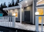 Улучшенная версия «Оптима» / «Стандарт», в которую  включена сауна, второй санузел для максимального удобства, отделка фасада имитацией бруса вместо сайдинга, напольное покрытие- керамогранит, подсветка фасадов и свесов.
